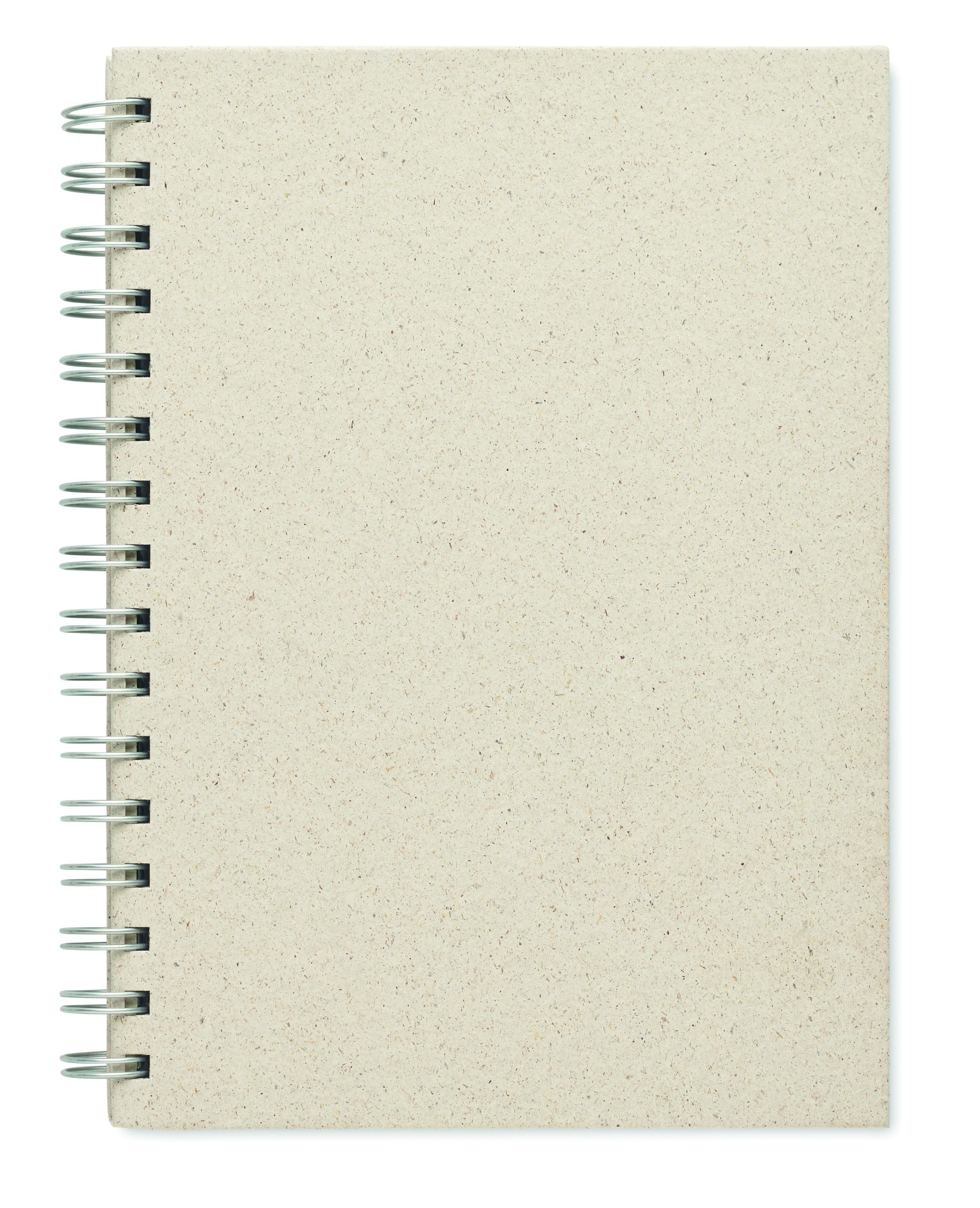 Carnet à spirales A5, 80 feuilles de papier à base d’herbe lignées et couverture en carton (40%). Fabriqué dans l’UE.