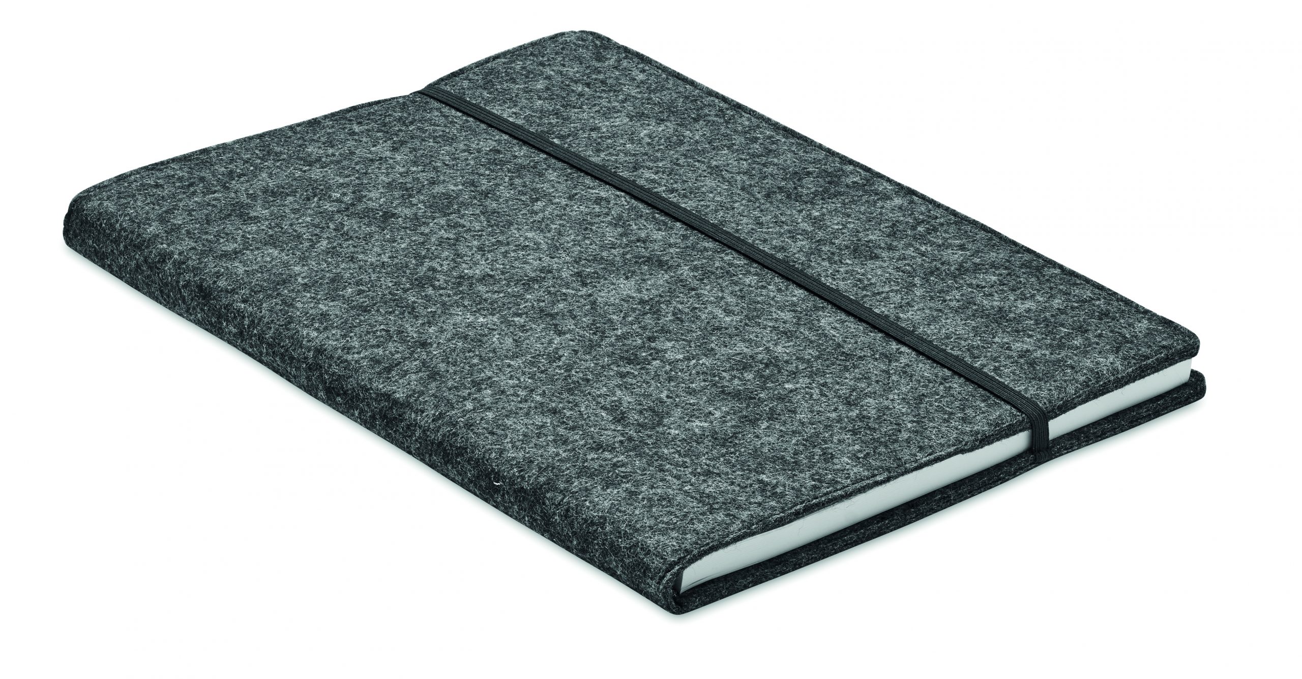 Carnet A5 avec couverture en feutre RPET. 160 pages lignées en papier recyclé (80 feuilles / 70 gr/m²). Passant pour stylo.