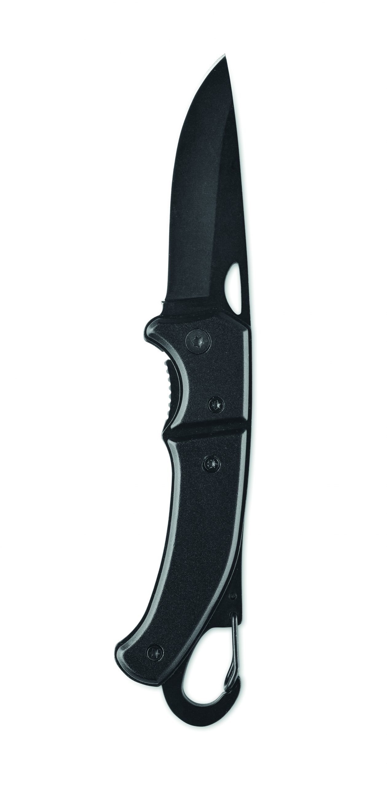 Couteau pliable en aluminium avec mousqueton. Lame en acier inoxydable.