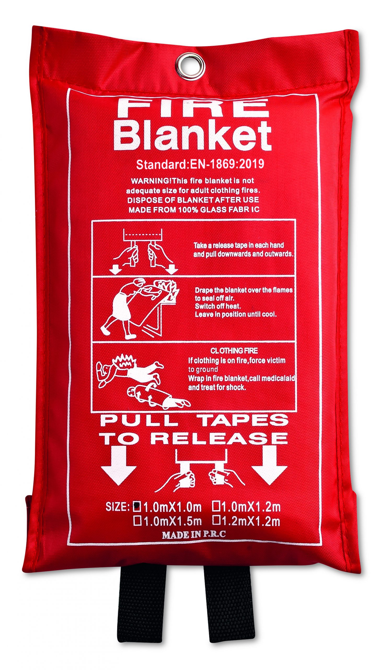 Couverture anti-feu en fibres de verre, présentée dans une housse PVC. Dimension Couverture: 95×100 cm.