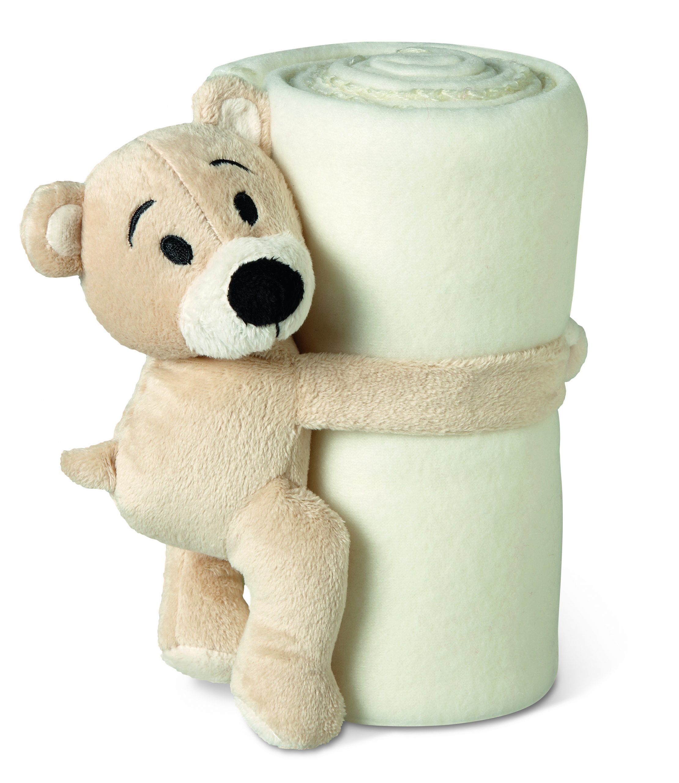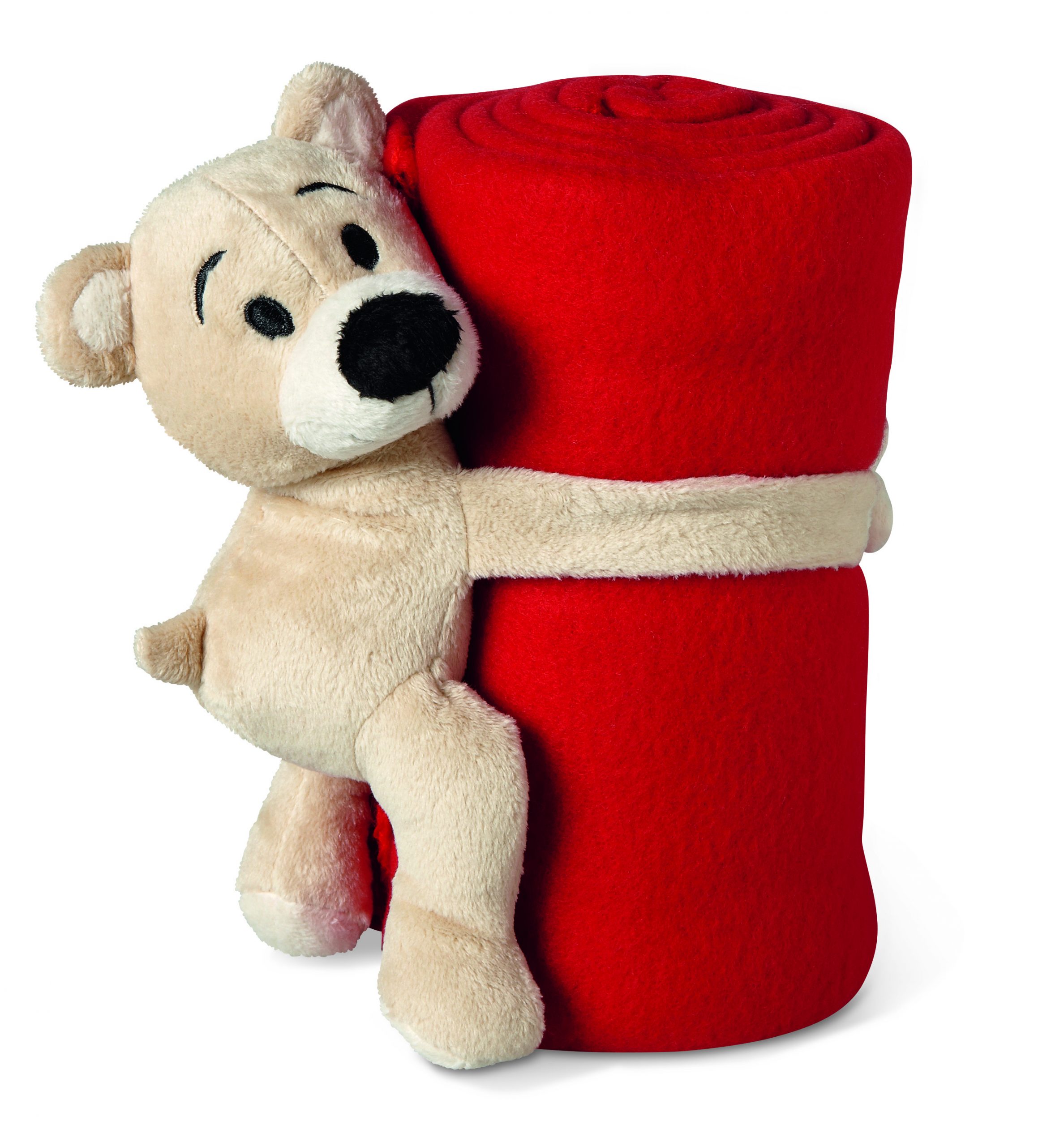 Couverture polaire pour enfants avec nounours tenant la couverture avec des mains en velcro.
