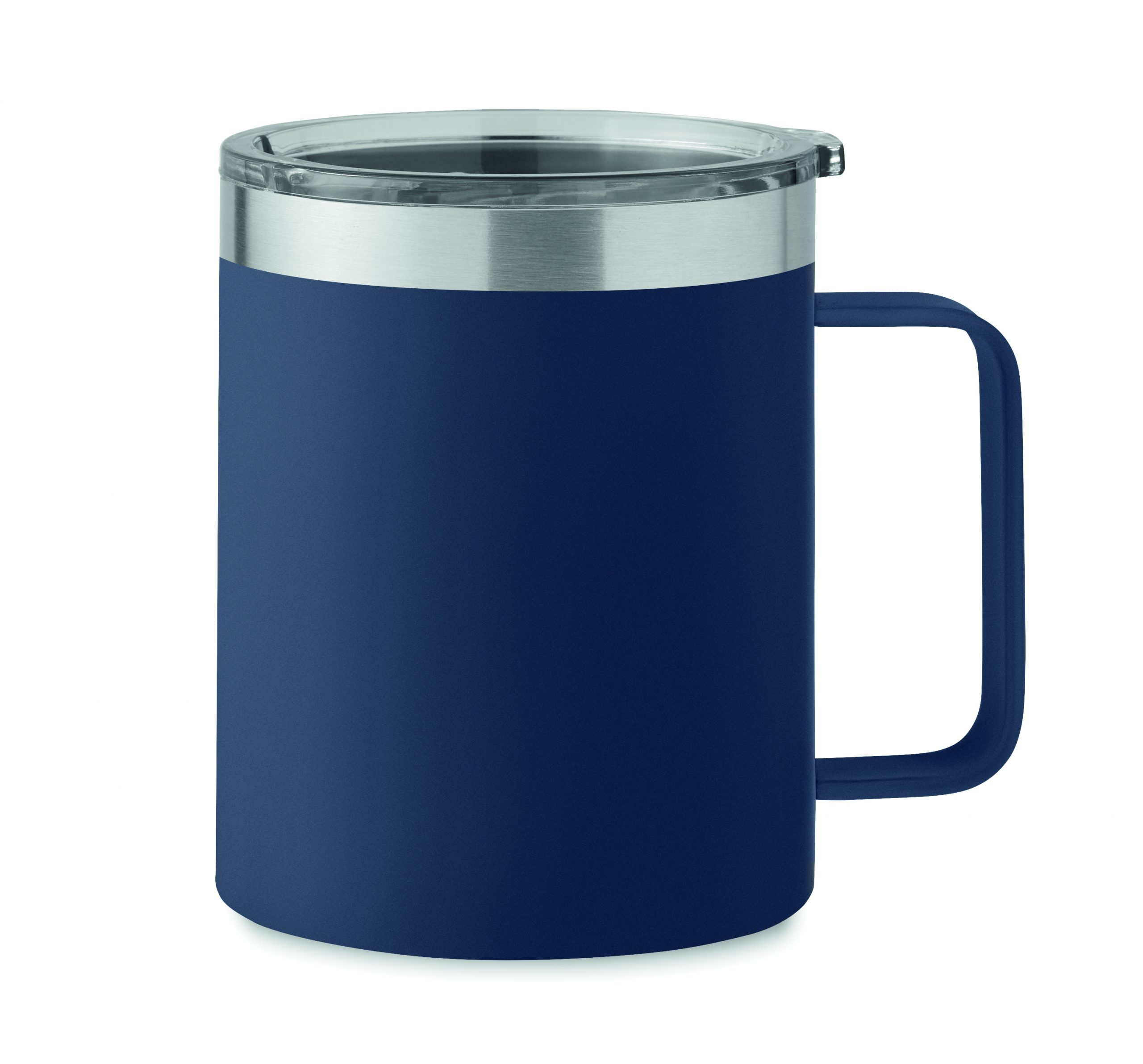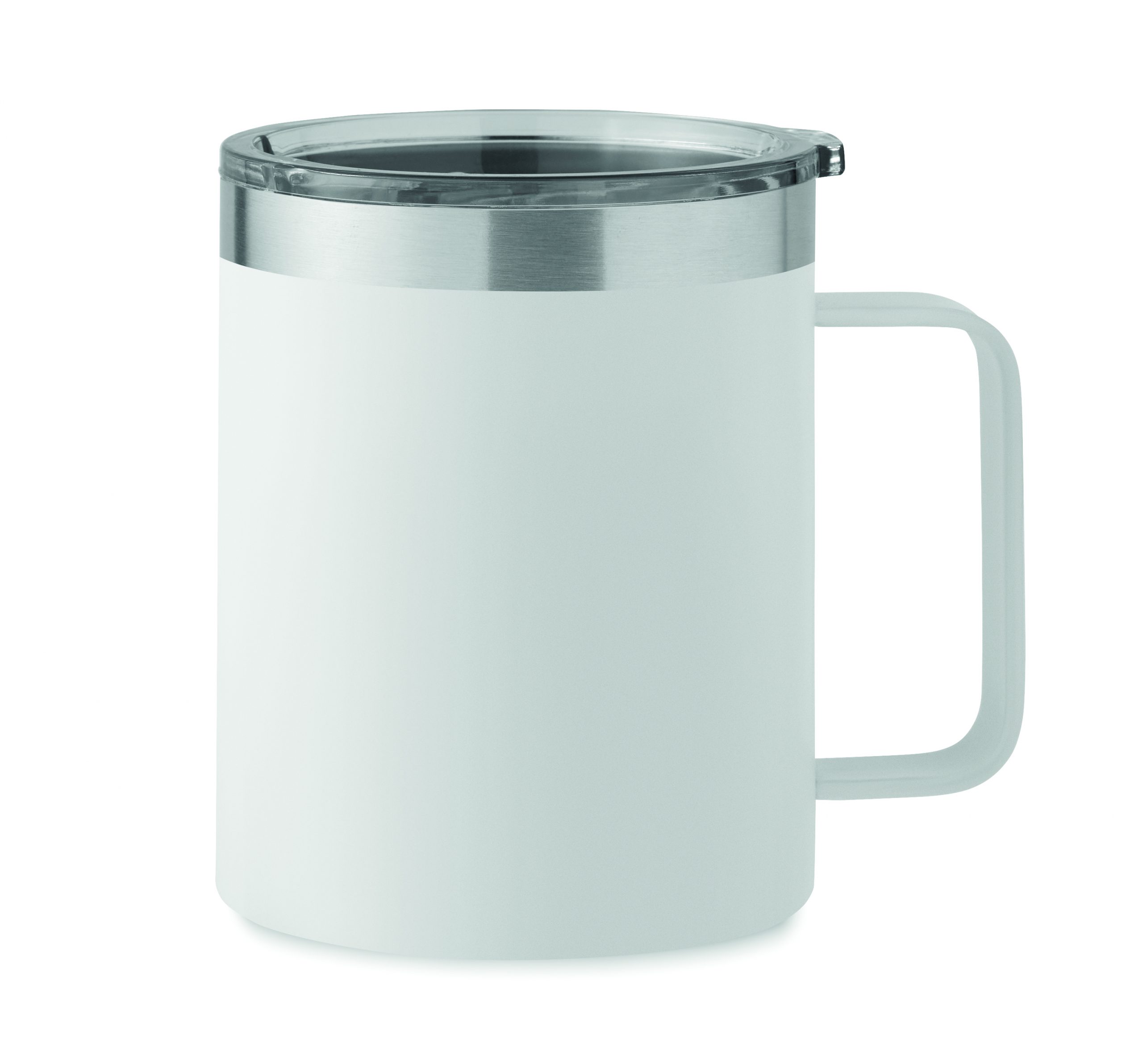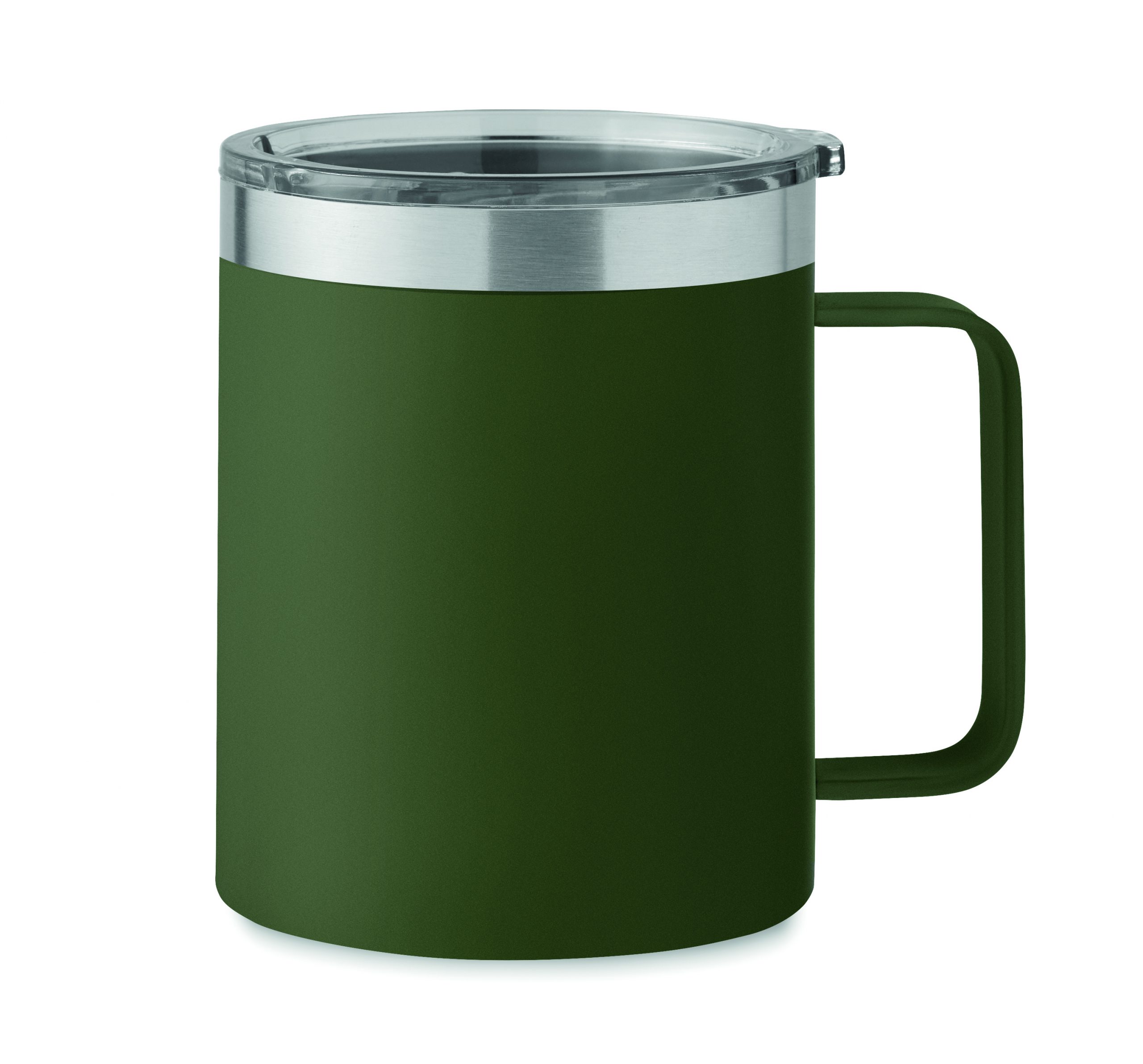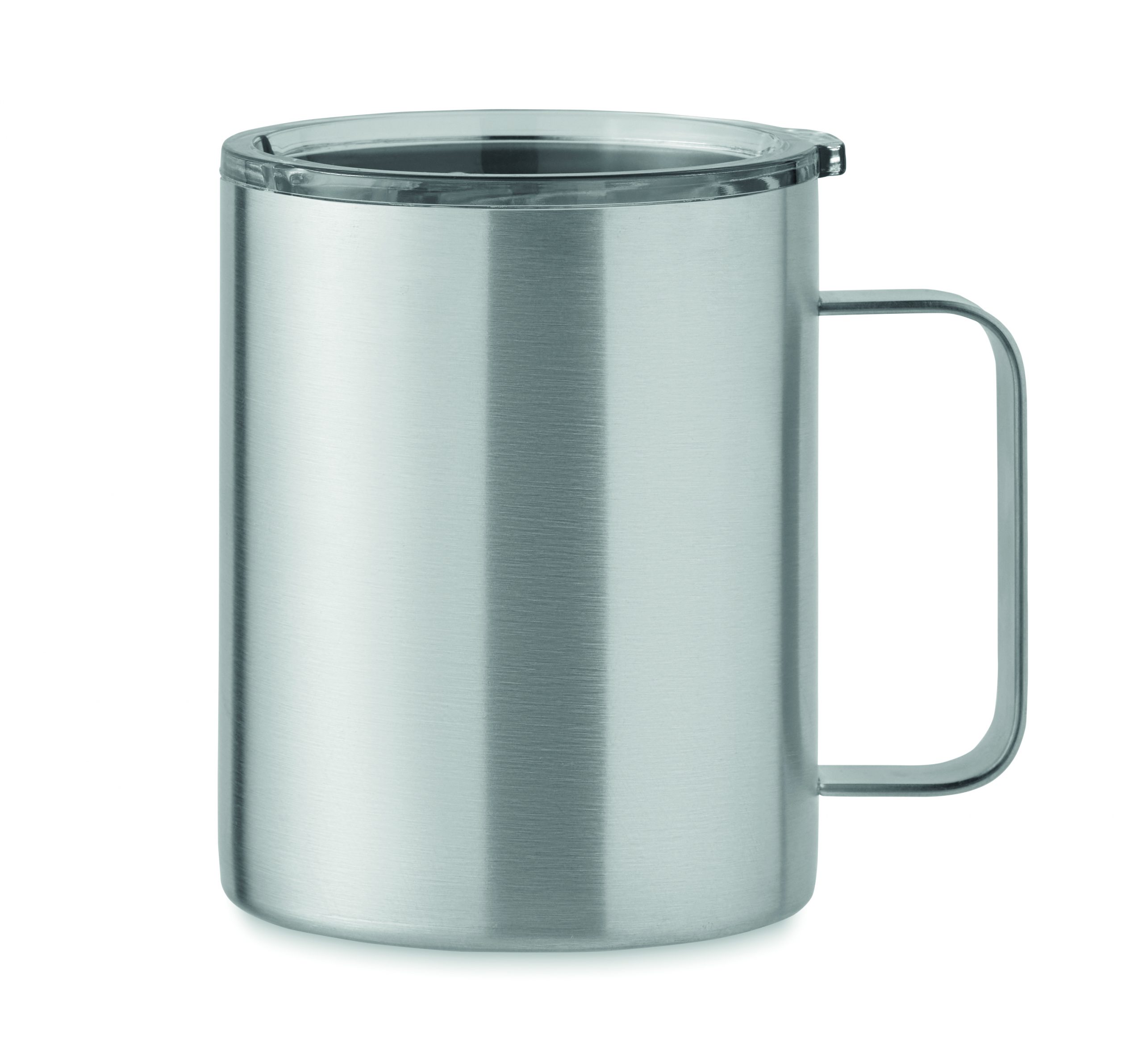 Gobelet à double paroi en acier inoxydable recyclé (90% d’acier inoxydable recyclé et 10% d’acier inoxydable) avec couvercle à curseur coulissant. Capacité : 300 ml.
