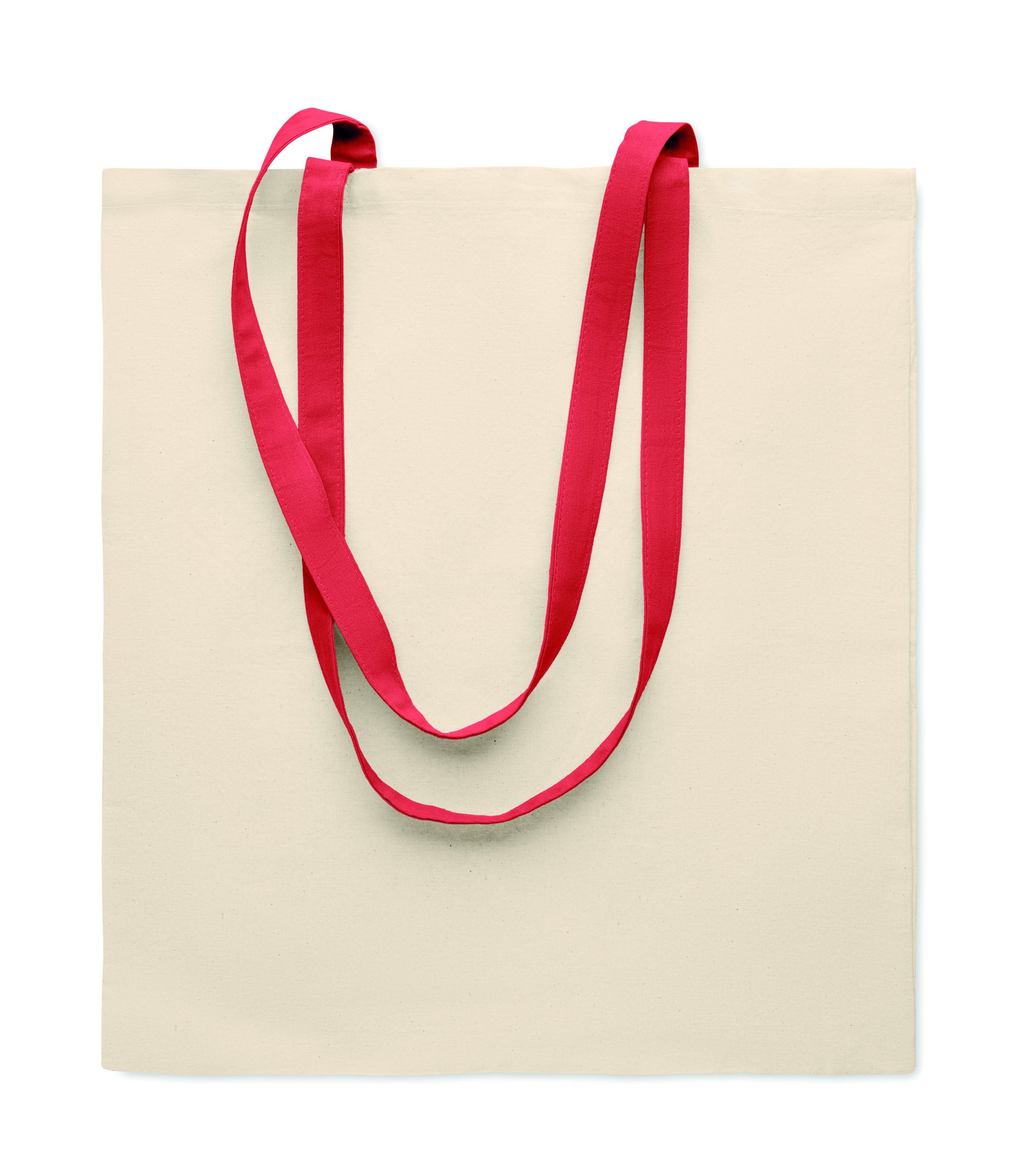 Sac à provisions en coton avec de longues anses colorées. 140 gr/m².