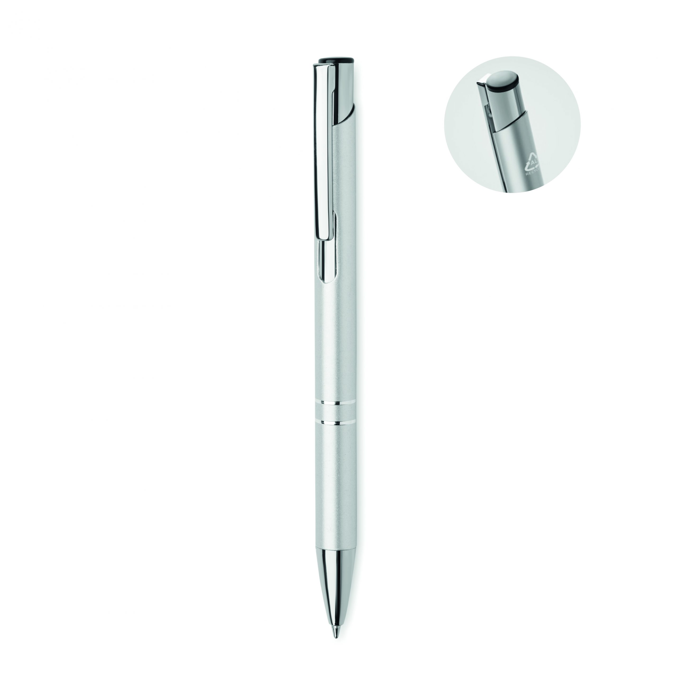 Stylo à bille à bouton poussoir en aluminium recyclé. Encre bleue.